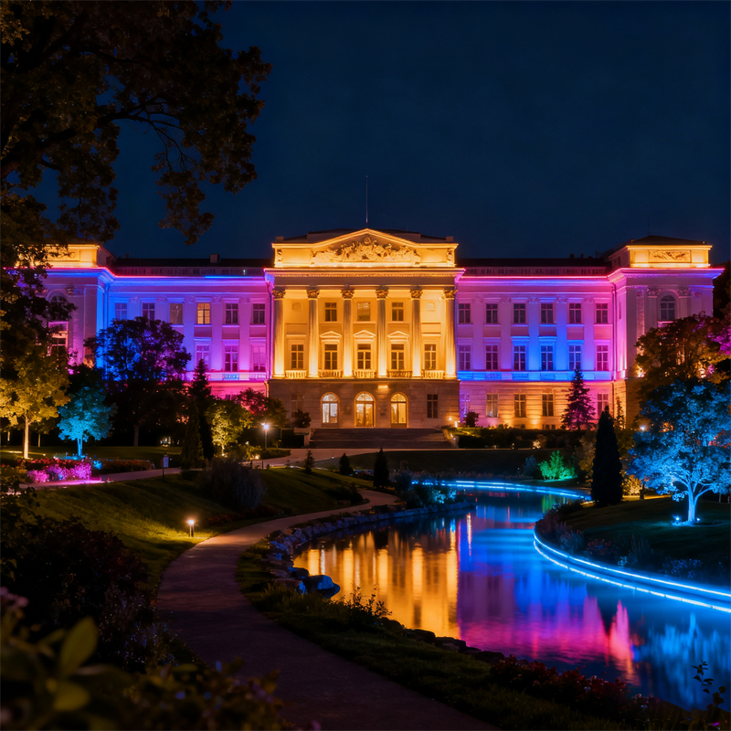 凭借集团全产业链优势,联动旗下子公司实现能源供应、劳务保障、项目管控的高效协同,在设计中兼顾美学呈现与实用需求,注重灯光与建筑形态、自然环境的和谐融合,通过科学的光影布局与节能技术应用,既提升场景夜间视觉效果,又保障照明的稳定性与经济性,助力城市夜间景观升级与功能完善。